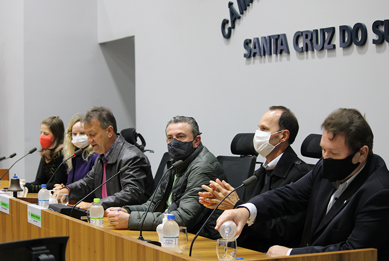 Também estiveram presentes na reunião especial a gestora de Inovação e Tecnologia da Secretaria Estadual de Inovação, Ciência e Tecnologia, Alessandra Schinaider, o representante da Assemp, Roberto Gross, o diretor da Doka Lab, Rogério Pereira, a gerente regional do Sebrae, Liane Klein, e a analista de Articulação de Projetos do Sebrae, Claudia Kuhn.