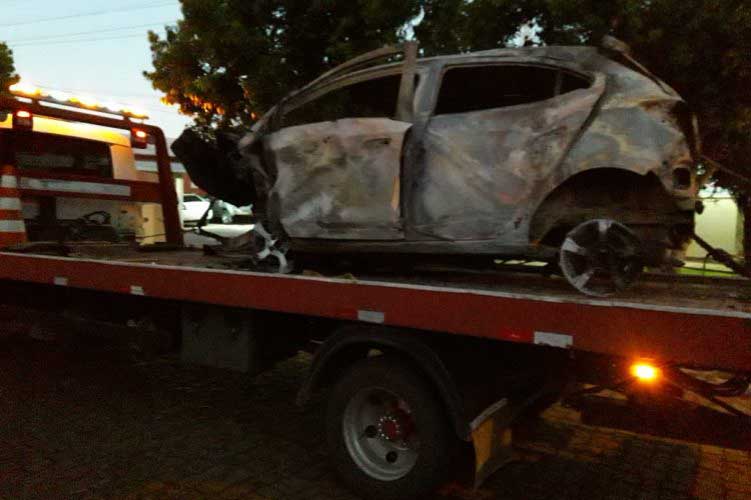 Carro tripulado por moradores de Sobradinho pegou fogo após capotar na RSC-481