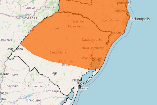 Foi emitido pelo Instituto Nacional de Meteorologia (Inmet) um alerta laranja, sinalizando perigo de tempestade em grande parte do Rio Grande do Sul, incluindo todo o Vale do Rio Pardo, entre as 10 horas desta terça-feira, 13, até as 10 horas de quarta, 14.