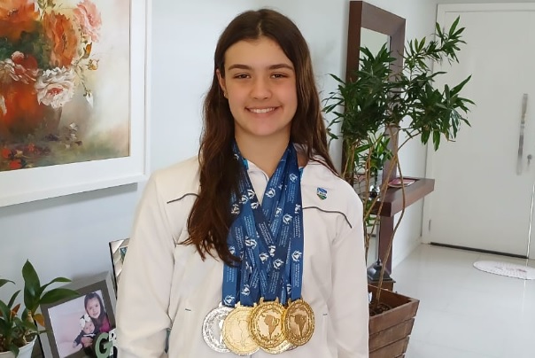 Renata Branchi Moreira, de 15 anos, estudante do 9º ano no Colégio Mauá, está em busca do índice olímpico para marcar presença em Los Angeles 2028. O objetivo é incentivado pelo pai Marcos Paulo, pela mãe Jordana e a irmã Larissa. Somente no Sul-Americano, disputado entre 24 e 28 de setembro, no Rio de Janeiro, a atleta acumulou quatro medalhas de ouro e seis de prata.