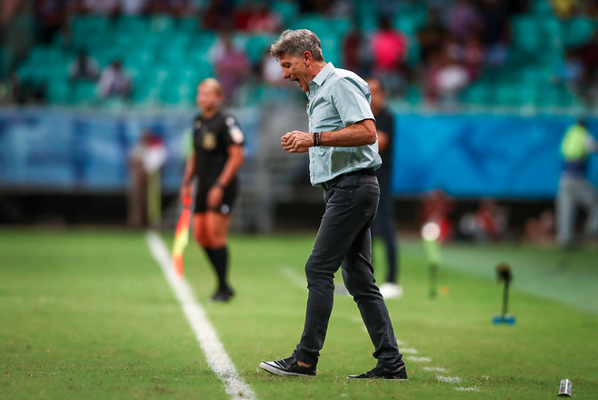 O técnico Renato Portaluppi comemorou a vitória por 2 a 1 sobre o Bahia na noite de sábado, 1º, e reforçou o desejo de ser campeão brasileiro com o Grêmio.