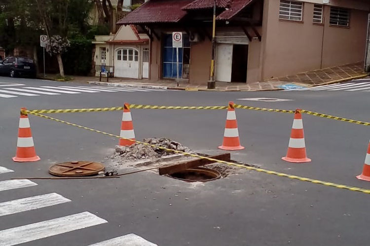 São realizados na manhã desta sexta-feira, 28, reparos em um buraco no cruzamento entre as ruas Ramiro Barcelos e Thomaz Flores, no Centro de Santa Cruz do Sul. Conforme o secretário de Transportes e Serviços Urbanos, Gérson Vargas, os serviços são realizados até o meio-dia, alterando o trânsito nas proximidades. Os motoristas que passam pelo local precisam redobrar a atenção.