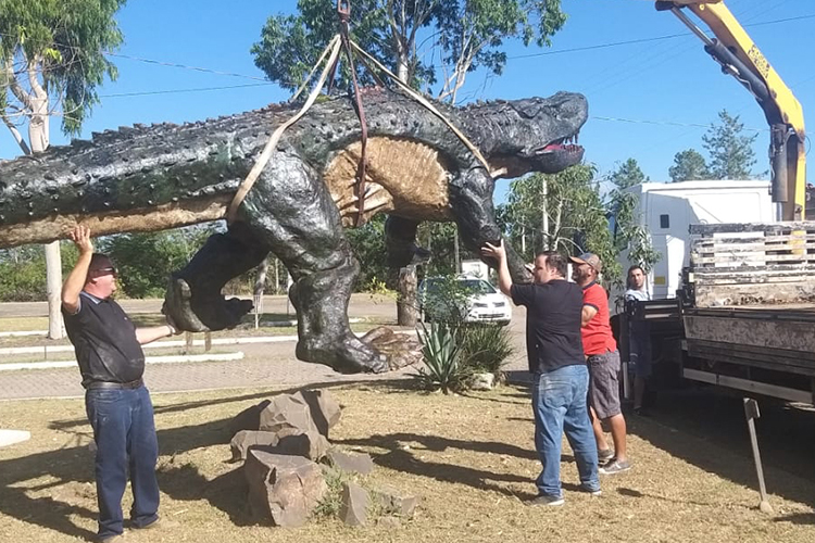 Uma réplica do maior predador do Período Triássico voltou ao Parque Municipal de Eventos Itamar Vezentini, de Candelária, na manhã dessa sexta-feira, 15. A reprodução do Prestosuchus chiniquensis em tamanho original foi feita há oito anos, com o uso de fibras, e necessitou de restauração, pois perdeu a cor com a exposição às condições climáticas, danos provocados pelas roçadeiras que cortam o gramado do local e também algumas depredações.