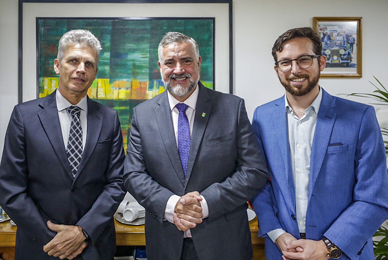 João Pedro Schmidt à esquerda na foto, com Pimenta (Centro), e Frederico Barros (esquerda) | Foto: Lucas Leffa/Divulgação
