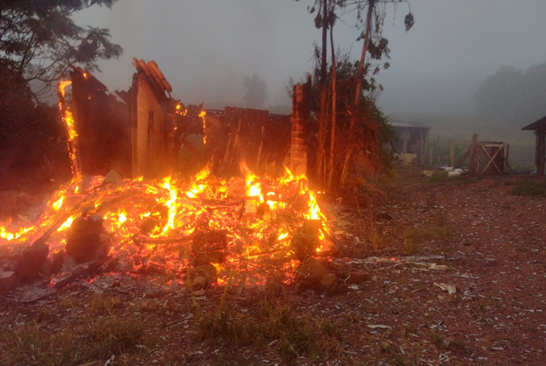 Uma residência foi totalmente destruída em um incêndio na manhã desta quinta-feira, 7, em Venâncio Aires. O fogo começou por volta das 6 horas, em propriedade na localidade de Linha Cerro dos Bois.