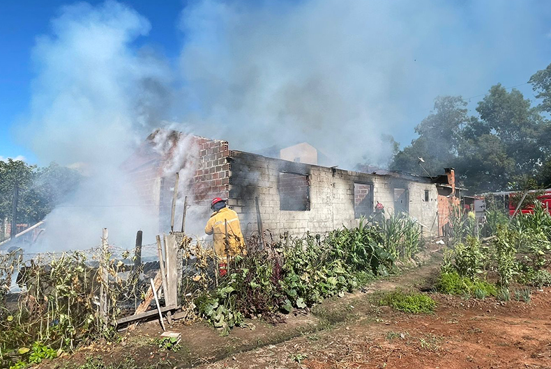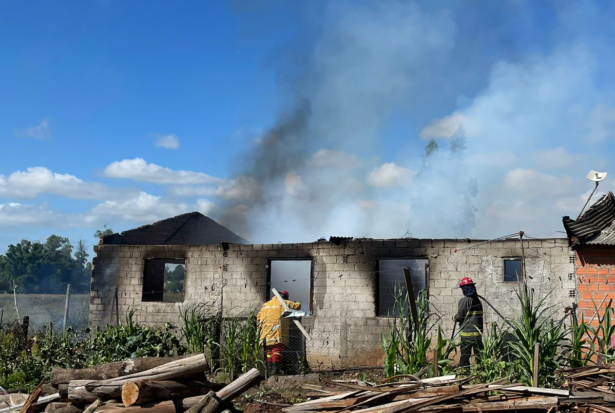 Um incêndio atingiu uma residência em Candelária na manhã desta segunda-feira, 27. Os bombeiros voluntários foram acionados por volta das 10 horas para combater as chamas em um imóvel na localidade de Rincão das Casas. Cerca de 80% da estrutura foi atingida pelo fogo.
