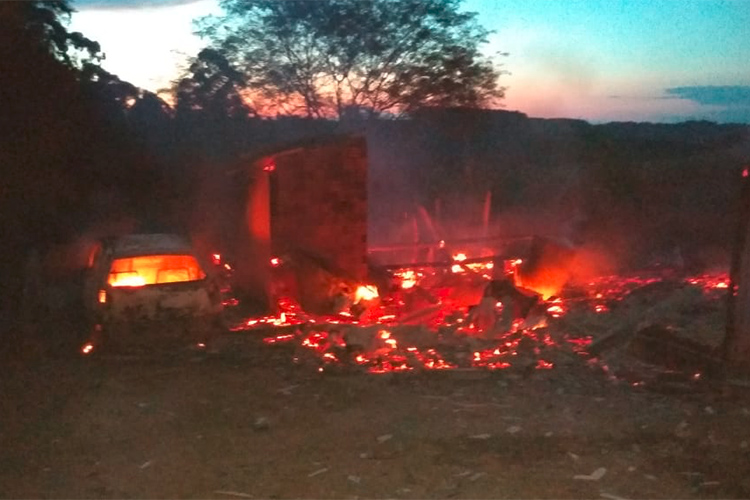 Uma residência pegou fogo na noite desta quarta-feira, 2, na localidade de Três Vendas em Segredo. O imóvel que pertence a Alcinei Adriano de Brito teve perda total. Um veículo próximo a residência também foi incendiado.