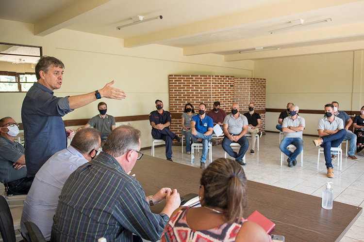 O encontro ocorreu na prefeitura e contou com a presença de lideranças regionais, entre elas o presidente da Frente Parlamentar da Agropecuária Gaúcha, deputado Edson Brum; o prefeito de Rio Pardo, Edivilson Brum; o secretário da Agricultura Familiar e Cooperativismo do Ministério da Agricultura, Fernando Schwanke, secretários municipais, sindicalistas, vereadores, produtores rurais, entre outros.