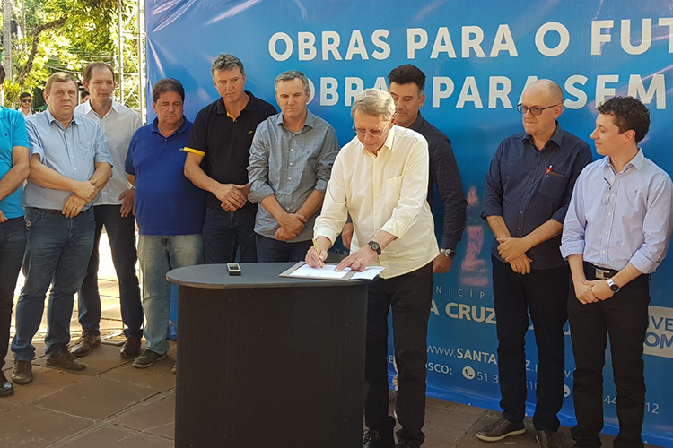 A Prefeitura de Santa Cruz do Sul promoveu um ato na tarde desta terça-feira, 3, em que o prefeito Telmo Kirst assinou a ordem de início das obras de revitalização do calçadão da Rua Marechal Floriano. Os trabalhos no local, um dos principais cartões-postais da cidade, devem estar concluídos em oito meses.