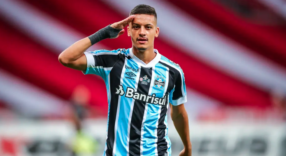 O contrato do atacante foi renovado em março passado. Seu vínculo com o Grêmio é válido até dezembro de 2024 e a multa rescisória é de 80 milhões de euros (R$ 405,6 milhões).