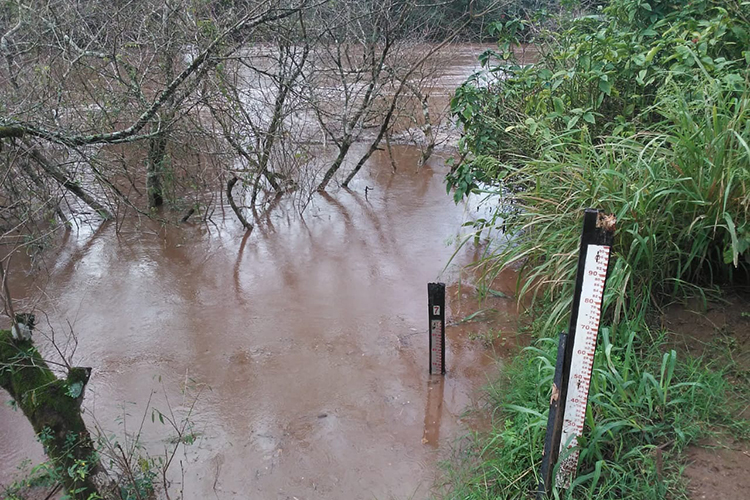 O nível do Rio Pardinho na Praia dos Folgados, no Bairro Várzea, em Santa Cruz do Sul, subiu cerca de 5 metros ao longo desta terça-feira, 30. Às 6 horas a medição indicava 1,37 metro. Doze horas depois, às 18 horas, o nível era de 6,60 metros. Os dados são da Defesa Civil municipal, que também lembra que o nível normal do rio, naquele ponto, fica entre 45 e 90 centímetros.