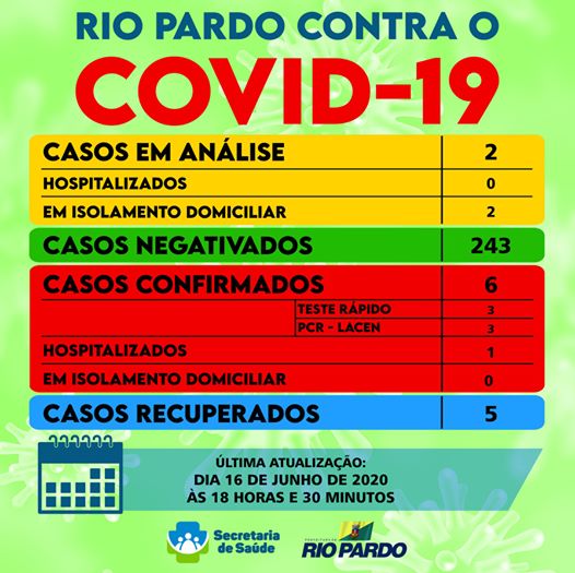 A Secretaria de Saúde de Rio Pardo registrou o sexto caso positivo de coronavírus nesta terça-feira, 16. Trata-se de uma mulher de 62 anos, que, após passar por consulta no Ambulatório Central no Clube Literário, apresentou piora no quadro e buscou atendimento no Hospital Santa Cruz (HSC). Ela permanecerá internada e seu estado é estável.