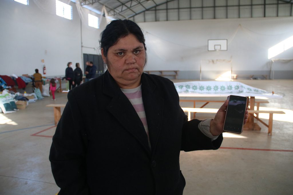 A agricultora Rejane Heine, 51 anos, moradora da Travessa Olaria, foi uma das pessoas abrigadas no espaço. Viúva, a mulher contou que estava sozinha em casa e nada conseguiu fazer . “A água subiu muito rápido e ‘tapou’ minha casa. Perdi tudo, até meus remédios para pressão e colesterol ficaram. Saí só com a roupa do corpo.”