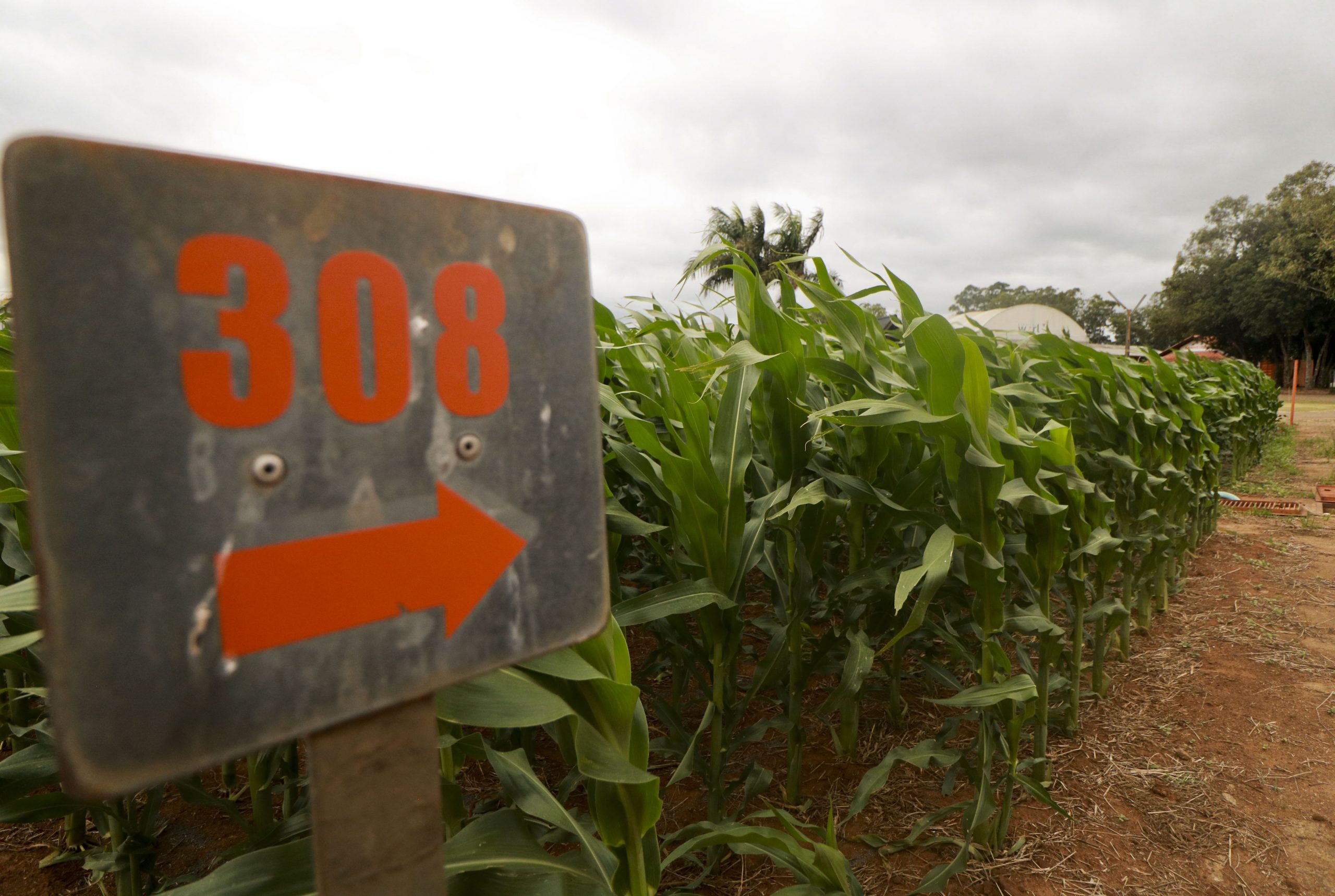 Culturas plantadas para a exposição são mantidas com sistema de irrigação, para enfrentar o momento de escassez de chuva