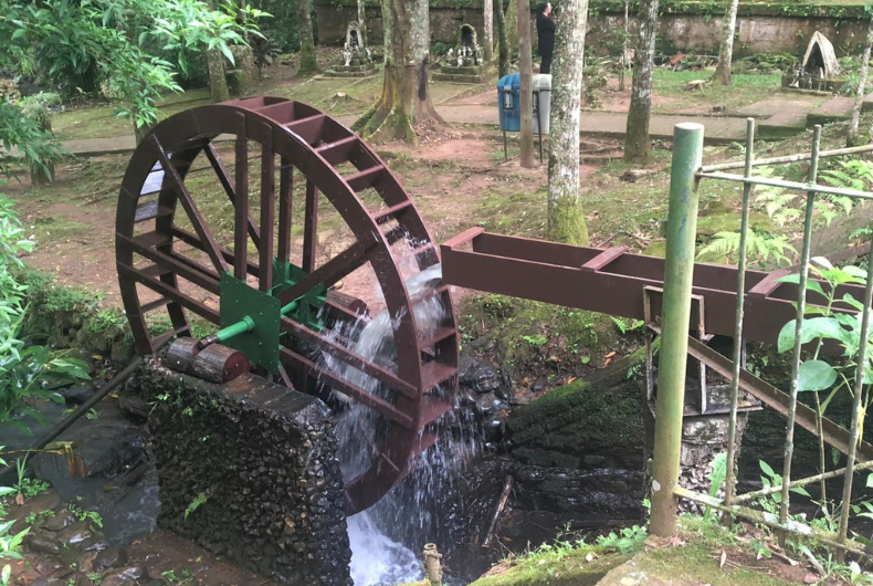 Roda d'água foi reinstalada no Parque da Gruta | Foto: Ana Souza/Divulgação