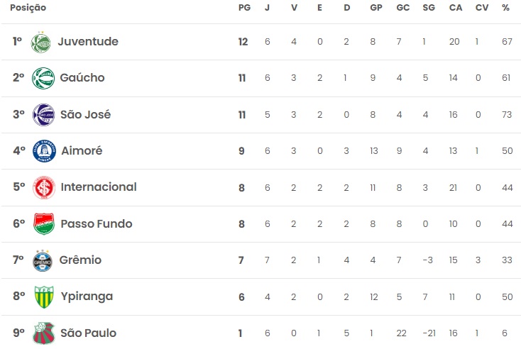 Os próximos jogos serão no meio de semana. Na quarta-feira, 9, às 15 horas, o Grêmio recebe o Aimoré no CT Hélio Dourado, em Eldorado do Sul. Às 19 horas, o Ypiranga enfrenta o Internacional no Colosso da Lagoa, em Erechim. Na quinta-feira, 10, às 19 horas, o São José encara o São Paulo no Francisco Novelletto Neto, em Porto Alegre.