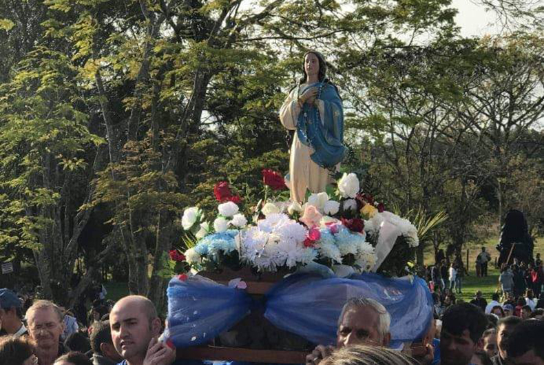 A Caminhada com Maria é realizada desde 1988, quando um menino de 11 anos teve a primeira visão de Nossa Senhora na localidade de Rincão, onde hoje está erguida a Igreja da comunidade de Nossa Senhora da Assunção. Na sequência, mais oito aparições foram registradas. Algumas crianças viram que a árvore chá de bugre estava chorando, saindo muita água e outros fenômenos extraordinários também foram vistos.