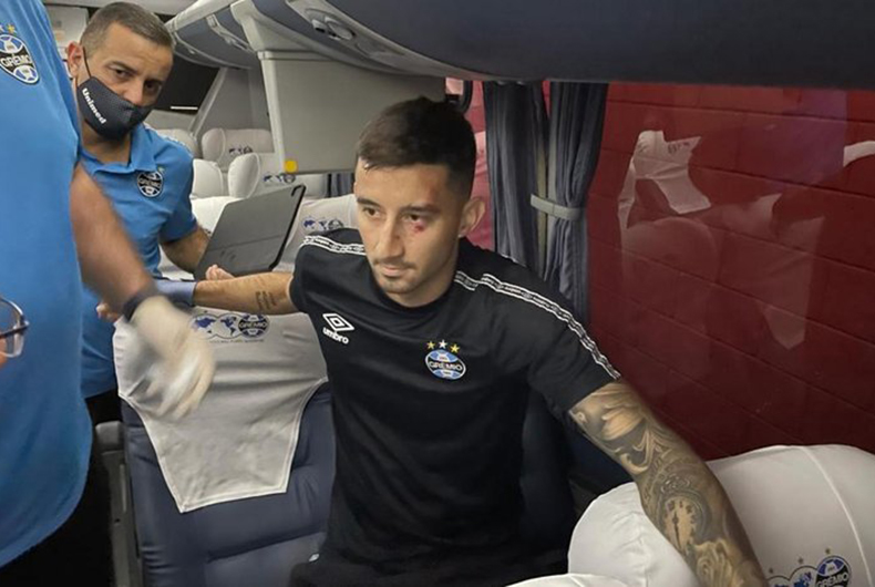 O ônibus com os jogadores do Grêmio foi apedrejado nos arredores do Estádio Beira-Rio, na tarde deste sábado, 26. O Gre-Nal 435, o primeiro de 2022, válido pelo Gauchão, estava marcado para as 19 horas. Pelo menos uma das pedras lançadas contra o coletivo atravessou uma janela e feriu jogadores. O caso mais grave é o do volante paraguaio Villasanti, atingido no rosto. Ele recebeu atendimento médico, ainda no estádio, e foi encaminhado, de ambulância, a um hospital. Outros atletas gremistas tiveram ferimentos leves, causados por estilhaços do vidro.