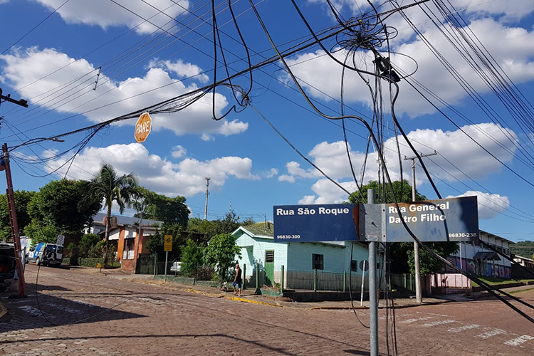 O rompimento de cabos de internet volta a causar transtornos em Santa Cruz do Sul. Desta vez a situação ocorreu na esquina das ruas General Daltro Filho e São Roque, no Bairro Arroio Grande. Conforme moradores, os fios arrebataram após a passagem de um caminhão com a carroceria muito elevada por volta das 12h45 desta quinta-feira, 27.