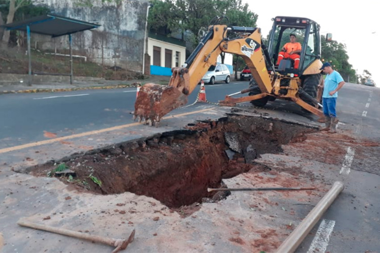 O fornecimento de água foi interrompido nos Bairros Ana Nery e Faxinal Menino Deus por conta do rompimento de uma rede na Rua Dona Carlota na noite desta terça-feira, 14.