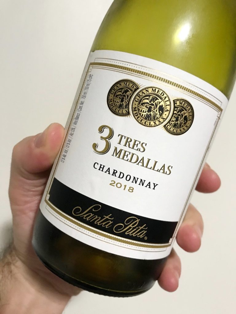 Os vinhos elaborados pela uva Chardonnay se deram muito bem no Chile. Pela condição de geolocalização e clima influenciado pela proximidade com o Oceano Pacífico e pela Cordilheira dos Andes, os rótulos dessa casta, mesmo sendo de linha de entrada, ficam acima da expectativa. Um desses vinhos é o Santa Rita 3 Medallas Chardonnay 2018, elaborado pela gigante chilena Viña Santa Rita. Ele tem linda coloração amarelo palha com nuances esverdeadas, muito brilhante e límpido.