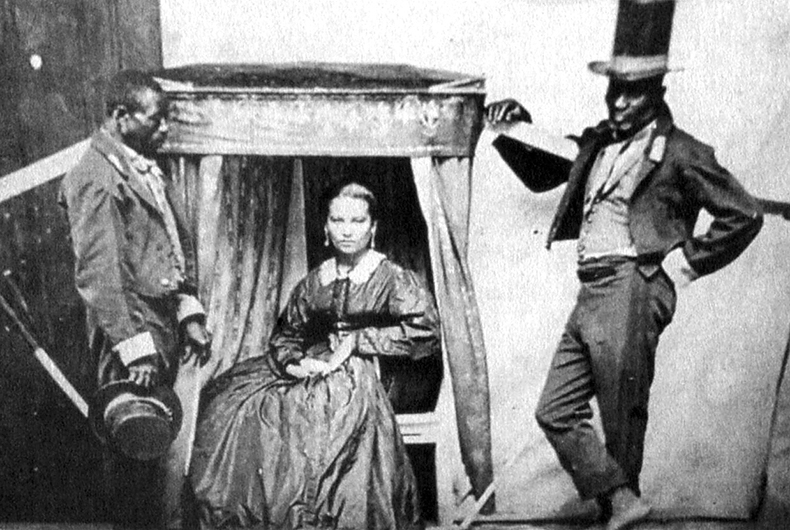 Os escravos e a liteira de Maria Júlia Pinheiro, a esposa do Visconde de São Leopoldo