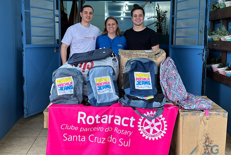 A organização da ação ficou por conta do Rotaract Club de Santa Cruz do Sul, já conhecido na comunidade pelo Projeto Minha Mochila Jeans, que já beneficiou mais de 850 estudantes santa-cruzenses com mochilas escolares confeccionadas a partir de calças jeans usadas. O clube doou 55 mochilas do projeto em um esforço de produção de apenas duas semanas.