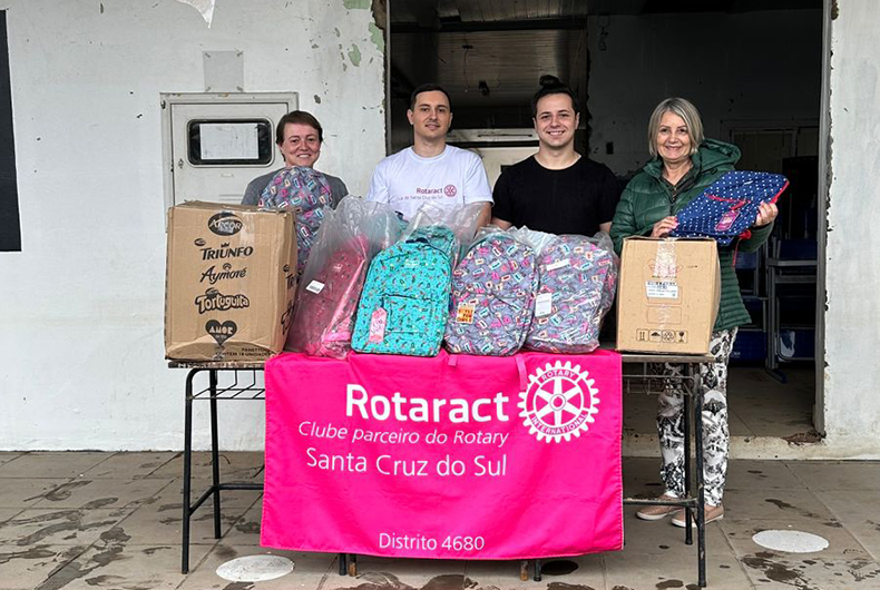 Na tarde dessa quarta-feira, 11, mesmo sob chuva, voluntários do Rotaract Club de Santa Cruz do Sul e da equipe da Clip Graffite viajaram até Roca Sales para fazer o bem. Em uma ação solidária em parceria com o Distrito de Rotaract 4680, mais de 150 kits escolares, com mochila e materiais básicos, foram entregues para duas escolas.