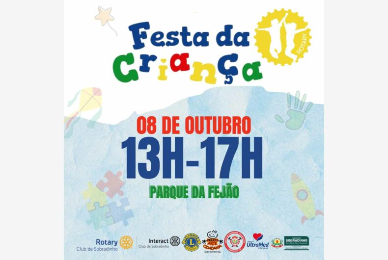 A tradicional Festa da Criança promovida anualmente pelo Rotary Club Sobradinho volta a ser realizada após período de pandemia. O evento ocorre neste sábado, 8 de outubro, no Parque da Fejão.