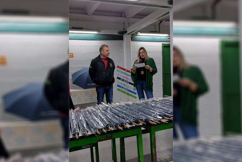 Os 65 estudantes da Educação de Jovens e Adultos (EJA) noturna da Escola Municipal de Ensino Fundamental (Emef) Menino Deus foram contemplados com guarda-chuvas doados pelo Rotary Club Santa Cruz do Sul. O pedido chegou à entidade por meio de uma amiga e colaboradora da instituição de ensino. De acordo com a diretora da Emef Menino Deus, Leila Adriane Lopes Berlt, a ideia surgiu com o aumento no número de faltas, principalmente à noite. A equipe diretiva começou a perceber que muitos alunos deixavam de ir à escola em dias chuvosos porque não tinham guarda-chuva.