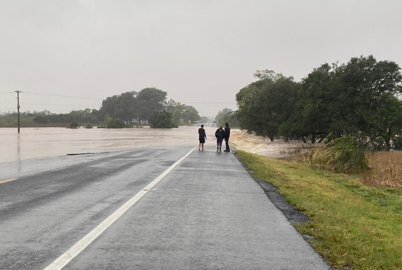 - No km 54, em Cachoeira do Sul, pista submersa.