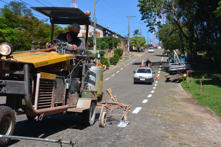 Os trabalhos de pintura são realizados nas ruas Dom Guilherme Müller, que recebeu uma camada de asfalto na última semana, e Edmundo Baumhardt, que também foi pavimentada.