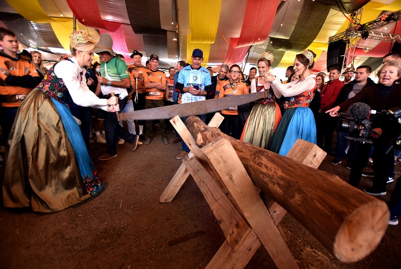 Já na tarde deste domingo, 9, o público lotou a Tenda das Artesanais para conferir a primeira semifinal da Olimpíada Rural, com a participação de oito clubes da Liga de Integração do Futebol Amador de Santa Cruz do Sul (Lifasc), nas modalidades de bolão de mesa, bolão de bola presa, corrida de carrinho de mão, corrida de saco, jogo Schafkopf e também competições de serrar lenha, trocar roda de carroça, cabo de guerra e corrida da colher. As soberanas da 37ª Oktoberfest, Rainha Daniele Müller e suas Princesas, Thaissy Balczarek e Estefani Wegmann, também entraram no clima da competição.