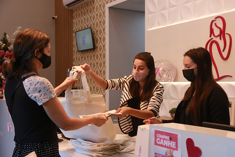 Equipe da Clínica Virtuosa entregou as sacolas e coletou os cupons para o sorteio
