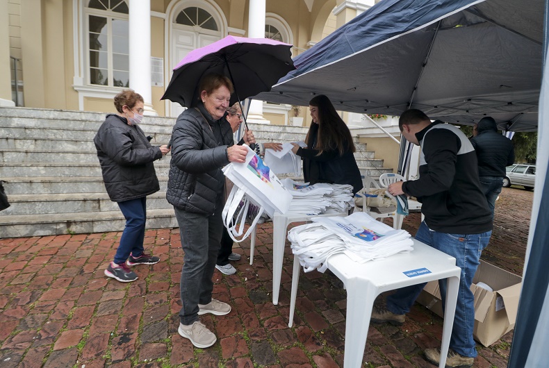 O tempo nublado e a garoa fina na manhã deste sábado, 25, não impediram a entrega da nova remessa das Sacolas do Bem. A iniciativa, que teve inicio às 8 horas e se estendeu até as 10 horas, permitiu que os leitores trocassem os cupons preenchidos de números 16, 17, 18, 19 e 20, publicados nas edições da Gazeta do Sul das últimas semanas, por uma sacola ecobag com estampa exclusiva do meio ambiente. O ponto de troca foi em frente ao Palacinho, na Praça da Bandeira, em Santa Cruz do Sul.