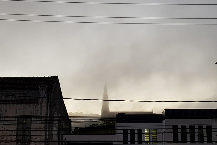 Finalmente parece que o outono chegou para ficar. A estação com temperaturas mais amenas deve se mostrar nesta semana com manhãs frescas e tardes aquecidas em Santa Cruz do Sul. Nesta segunda-feira, 29, a temperatura varia entre 13 e 25 graus com probabilidade de apenas 5% de chance de chuva. O dia amanheceu encoberto por uma camada de névoa que se dissipa aos poucos, tanto no Centro quanto nos bairros mais elevados. Até as torres da Catedral São João Batista estavam ocultas pela neblina por volta das 7 horas.