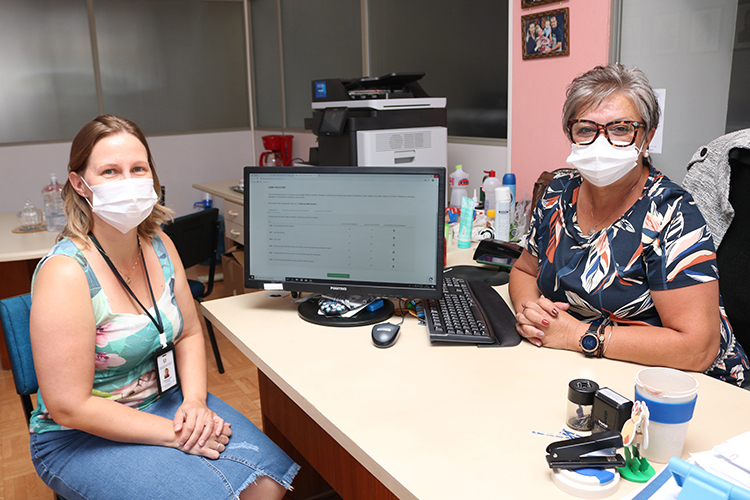 Leila e a coordenadora da 13ª CRS, Mariluce Reis, com a plataforma de pedidos online