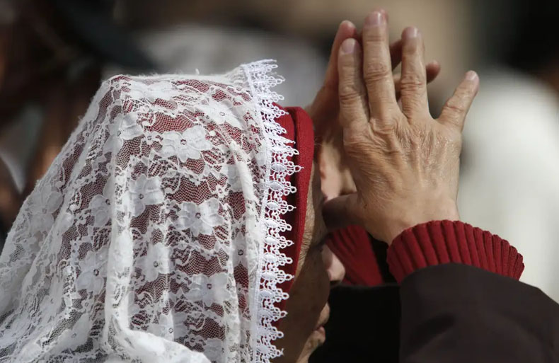 Ao benzer os fiéis, o padre traça uma cruz de cinzas, enquanto recita as palavras Convertei-vos e crede no Evangelho, que sinaliza o estado de penitência que o fiel deverá guardar nos 40 dias seguintes, e representa a fragilidade humana.