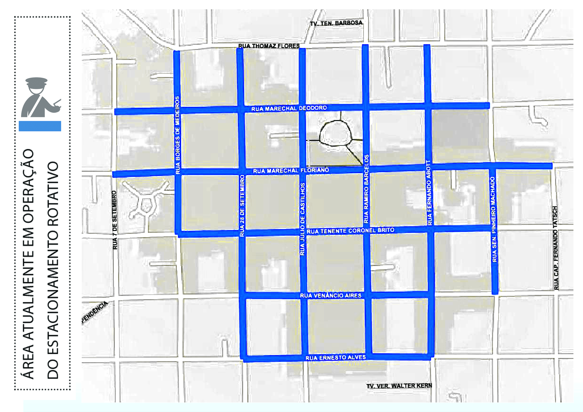 - 15 – Rua Fernando Abott, entre as ruas Marechal Floriano e Thomaz Flores (Zona Verde / trecho já é cobrado mas passará de Zona Azul para Verde)
