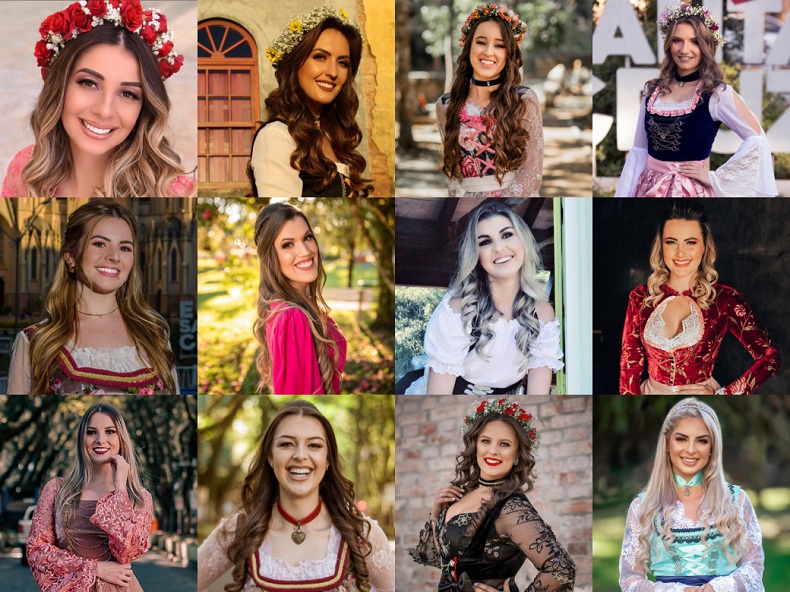A Associação de Entidades Empresariais de Santa Cruz do Sul (Assemp) divulgou, na tarde desta quarta-feira, 28, a lista das candidatas que concorrem a soberanas da 36ª Oktoberfest, evento previstos para o período de 6 a 17 de outubro de 2021. Ao todo, 12 meninas vão disputar os títulos de rainha e princesas, em evento no formato híbrido (presencial e virtual). A escolha está marcada para 22 de agosto, às 19 horas, no Pavilhão Central do Parque da Oktoberfest, com transmissão ao vivo pelo Facebook e YouTube.