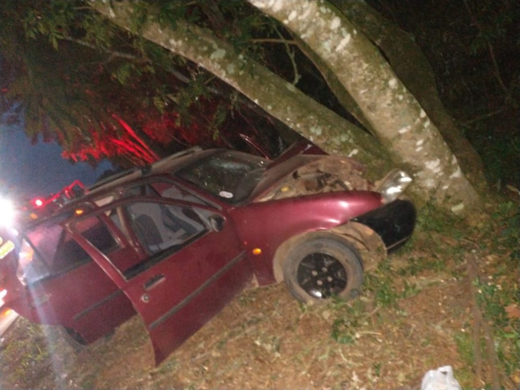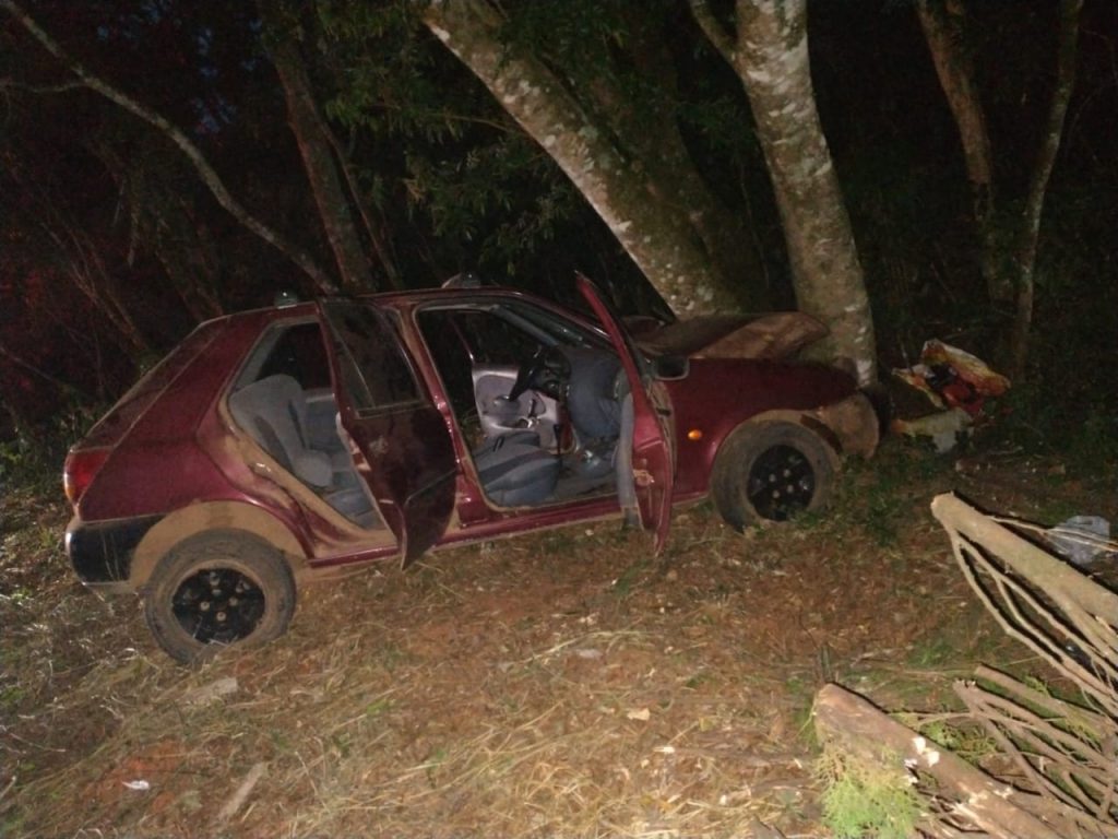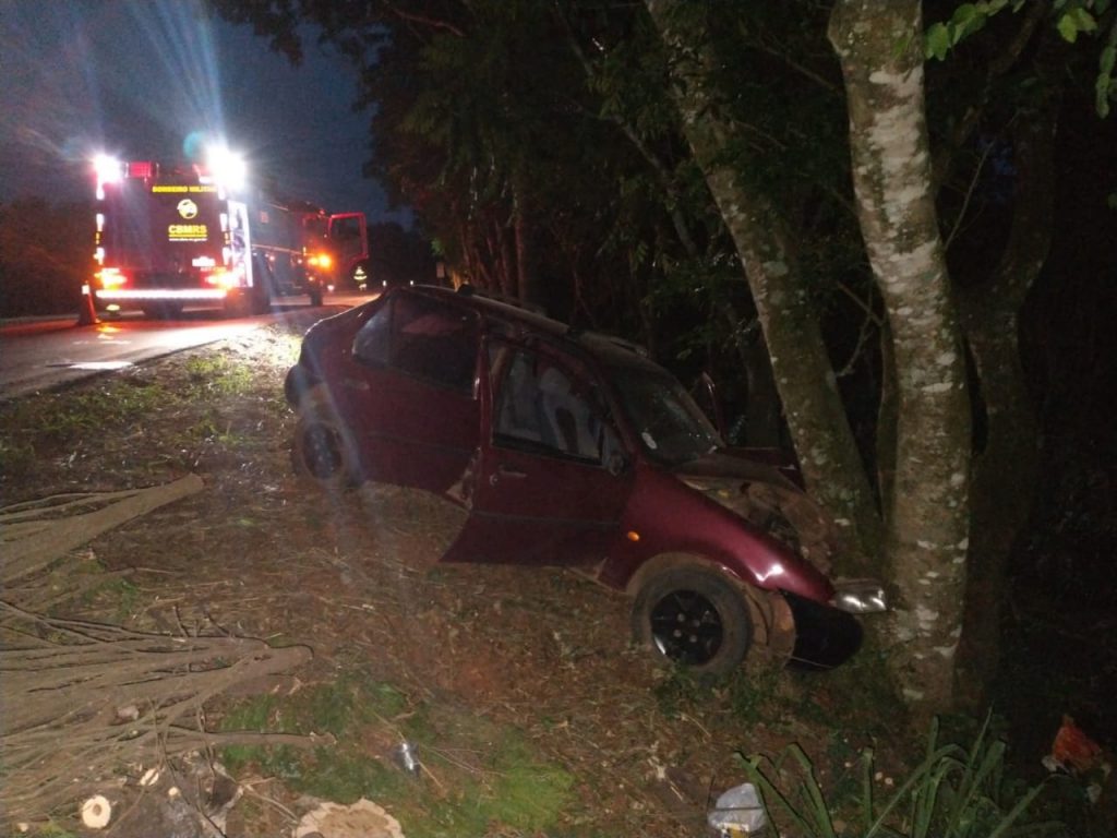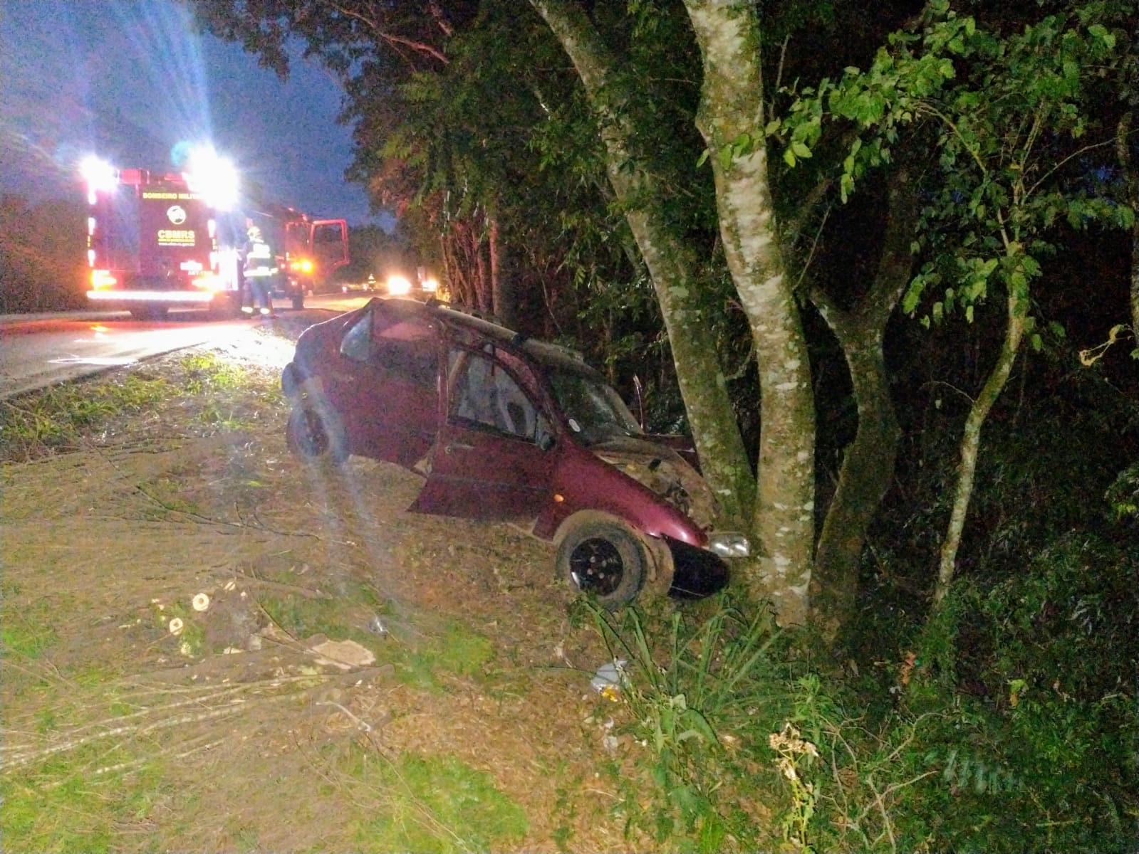 O condutor de um Ford Fiesta com placas de Santa Clara do Sul perdeu o controle da direção do veículo e acabou colidindo com uma árvore às margens da pista. Os dois ocupantes do carro, que não tiveram a identidade revelada, ficaram com ferimentos.
