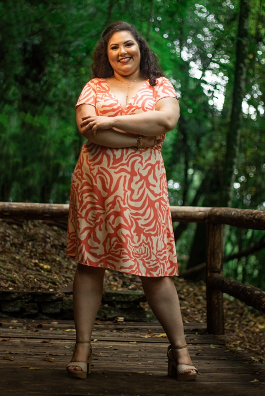 A representatividade de ver mulheres gordas estrelando campanhas publicitárias, e trabalhando em segmentos antes ocupados apenas por modelos padrão, a inspirou a iniciar sua carreira. “Meu corpo é esse, eu nunca fui magérrima. Então, não adiantava ficar brigando com isso. Foi depois disso que comecei a me gostar, me entender, e fui atrás de um concurso de miss, porque era algo que sempre quis, desde pequena”, relata. Quando conheceu uma competição de Miss Plus Size no Estado, ela sabia que era a chance de realizar esse sonho, sem ser obrigada a emagrecer ou perder sua essência.