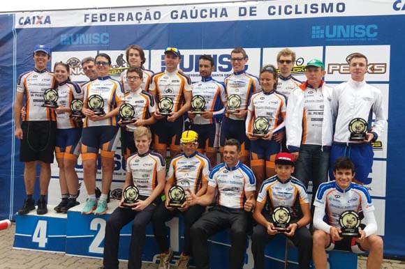 O clube Santa Ciclismo, de Santa Cruz do Sul, mais uma vez esteve no ponto mais alto do pódio do Campeonato Gaúcho da modalidade. O grupo conquistou o tetracampeonato por equipe e ainda obteve resultados expressivos nas categorias individuais no último fim de semana, em Bento Gonçalves.