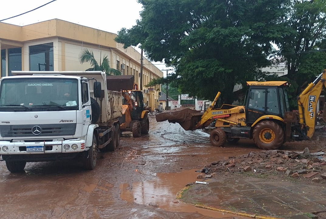 A escavadeira e outra retroescavadeira foram usadas na desobstrução de uma estrada geral. Dois caminhões também foram utilizados nas duas operações. O titular da Agricultura, Décio Hochscheidt, acompanhou o desenvolvimento dos trabalhos. Além disso, um caminhão-pipa também foi empregado para levar água ao hospital local e ao ponto de acolhimento dos desabrigados.