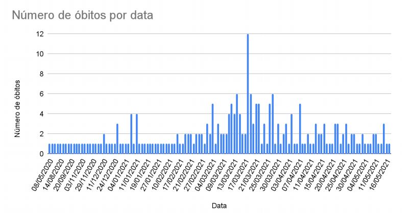 “Houve um aumento no número de óbitos a partir da segunda quinzena de março, quando a sobrecarga do sistema hospitalar encontrava-se no seu pior momento, no entanto estes números retornaram ao patamar anterior, ao passo que também os casos vão caindo e os hospitais vão diminuindo sua sobrecarga. Os números de óbitos se mantêm no mesmo patamar de abril, com a redução observada após o pico da segunda semana de março.”