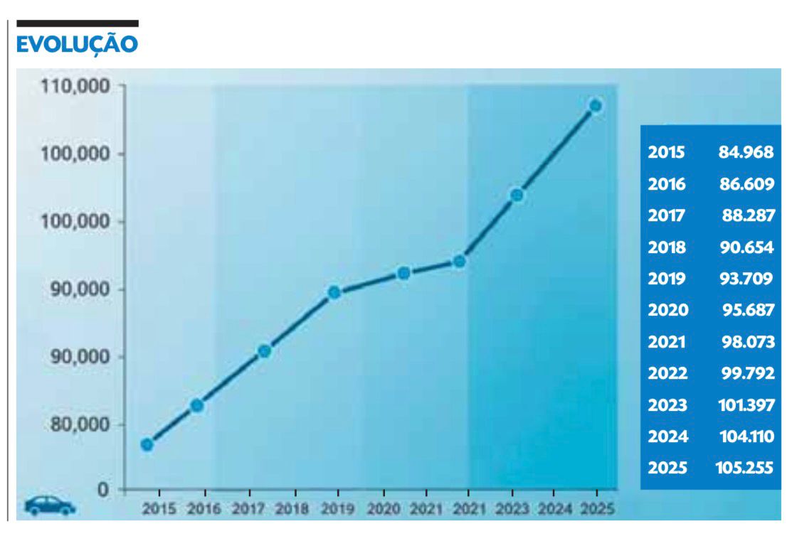 O dado é resultado de um levantamento feito pela Gazeta do Sul, levando em consideração a população divulgada pelo Instituto Brasileiro de Geografia e Estatística (IBGE) – 138.270 – e a quantidade de veículos conforme a atualização mais recente do Departamento Estadual de Trânsito (Detran) – 105.255. Desde 2015, houve um crescimento de 20.287 unidades com a predominância de automóveis: 58.906.