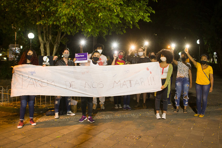 Manifestantes expuseram faixa com a frase "Parem de nos matar"