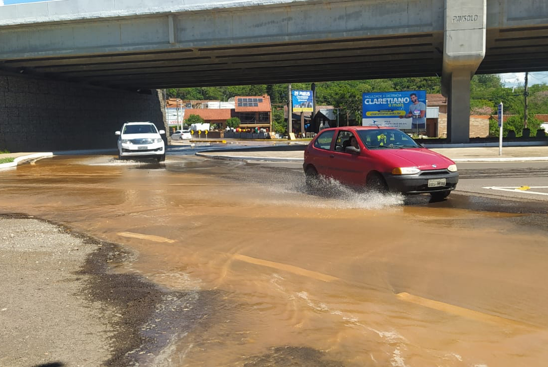 Já durante a tarde, os motoristas que trafegavam nas imediações do trevo do Fritz e Frida, na RSC-287, se depararam com pontos de alagamento em alguns trechos da rodovia. Um grande volume de água, ocasionado por um vazamento, acabou se formando no entorno ao viaduto.