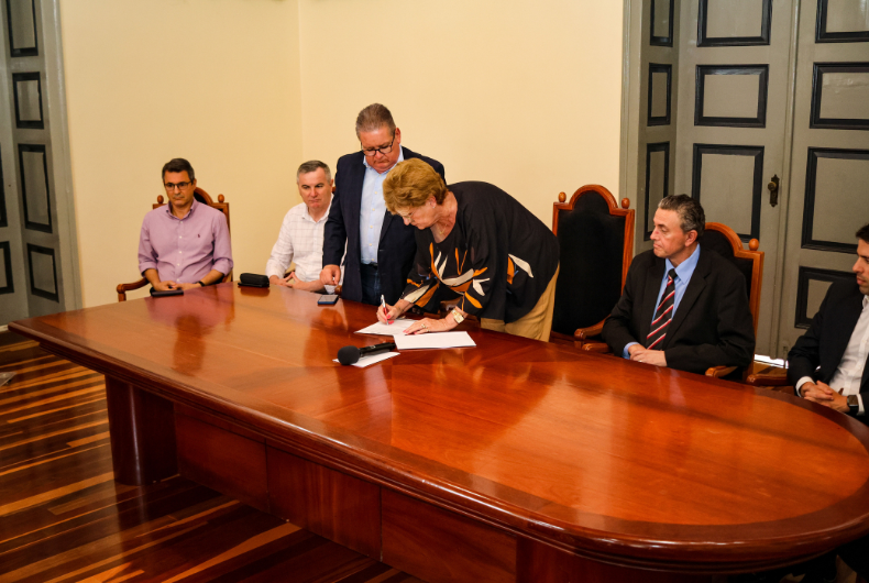 Prefeita Helena Hermany formalizou a parceria com o BRDE, representado pelo vice-presidente do banco, Ranolfo Vieira Júnior