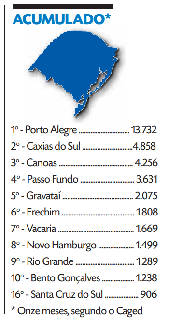 O agronegócio aparece como responsável pelo retorno do Brasil ao grupo das dez maiores economias do mundo, de acordo com o Produto Interno Bruto (PIB). Os dados do Cadastro de Empregados e Desempregados (Caged) divulgados nessa quinta-feira, 28, mostram que o setor também reflete de forma positiva na economia local. Com 212 novas oportunidades de trabalho geradas em novembro, garantiu saldo positivo para Santa Cruz do Sul e a soma de 906 vagas, o que equivale quase à metade das 2.160 criadas no Vale do Rio Pardo.